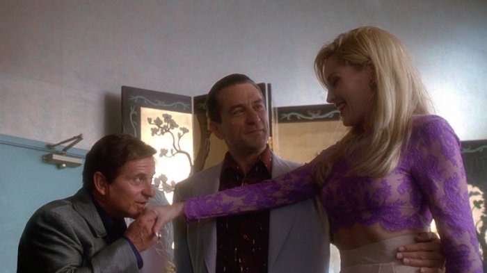 Cassino (1995). Duração: 2h58 minutos. Depois de dois ótimos longas (“Os Bons Companheiros” e “A Época do Inocência”), Martin Scorsese entrega um de seus trabalhos mais irregulares. Mais uma vez abordando o universo da Máfia, Scorsese conta uma história real sobre o submundo do crime e dos cassinos de Las Vegas no final da década de 1970. Dividindo a narrativa em duas linhas que se misturam, narradas pelos personagens de Robert De Niro e Joe Pesci, o cineasta, no entanto, erra a mão. Enquanto De Niro está quase apático, Pesci prima pelo exagero, o que desequilibra o longa, que ainda sofre por não ter uma trama mais centrada, e sim uma série de causos que vão se desenrolando até o final. A melhor coisa da produção acaba sendo a atuação de Sharon Stone (indicada ao Oscar). Ela é a única coisa que injeta energia em quase três horas de filme, o que é pouco, já que a personagem é coadjuvante e mal está presente no longa.