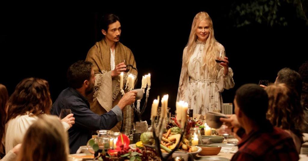 De um lado, temos a guru etérea que parece caminhar pelas nuvens e solta palavras de sabedoria ao vento, mas esconde um segredo do passado (Masha, vivida por Nicole Kidman). Do outro, temos os pacientes dessa “clínica”: uma família destruída pelo luto, uma mulher que não consegue superar o ex-marido, um homem de meia idade amargurado, uma escritora de romances futeis sempre enganada pelos homens, um gay que parece um estranho no ninho e um jovem casal com problemas típicos da geração Z.