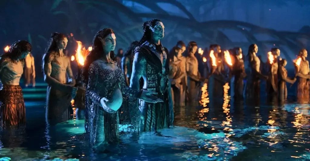 Seguindo sua lógica de aumentar a escala das produções (coisa que ele já havia feito nas continuações de “Alien, o Oitavo Passageiro” e do modesto “O Exterminador do Futuro”), James Cameron exagera em tudo em “Avatar: O Caminho das Água”. Da excessiva e desnecessária duração de 190 minutos ao número de personagens e efeitos visuais, tudo na produção preza pela grandiosidade.